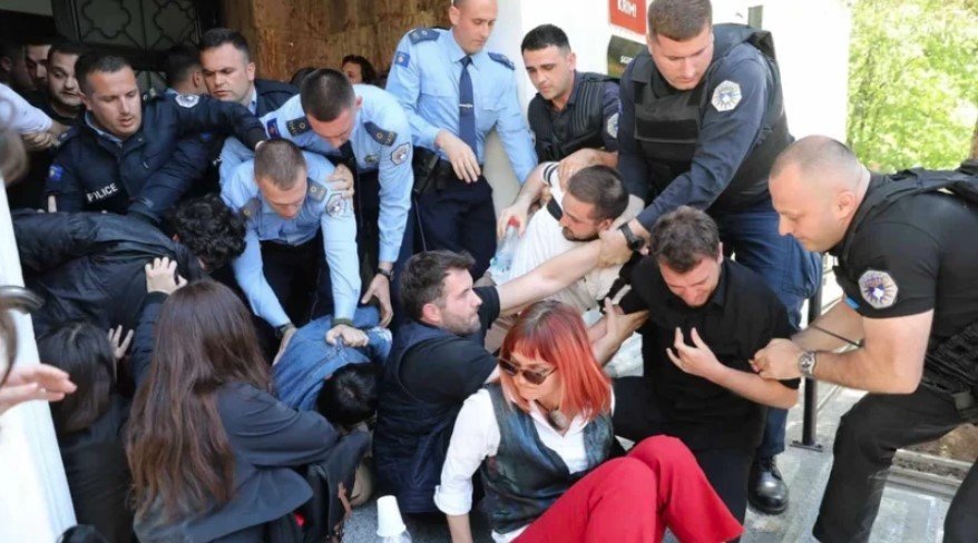 Policia e Kosovës i ka shpërndarë me forcë aktivistët e Lëvizjes Feministe Studentore dhe aktivistë të tjerë. Ata protestuan që