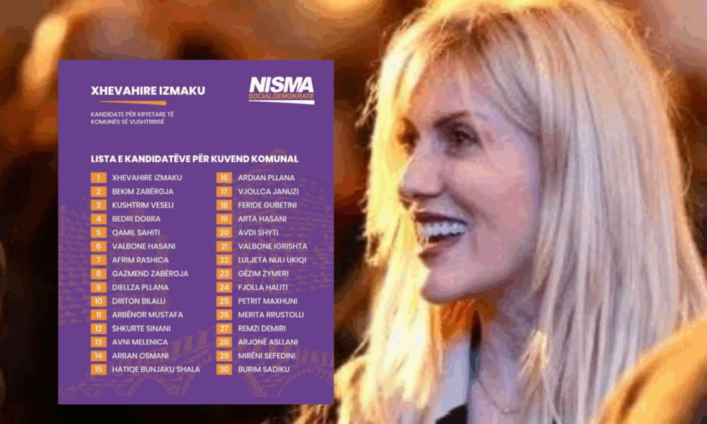 Kandidatja për kryetare të Vushtrrisë, Xhevahire Izmaku, ka bërë publike listën e kandidatëve të Nismës Socialdemokrate për Asamblenë Komunale të