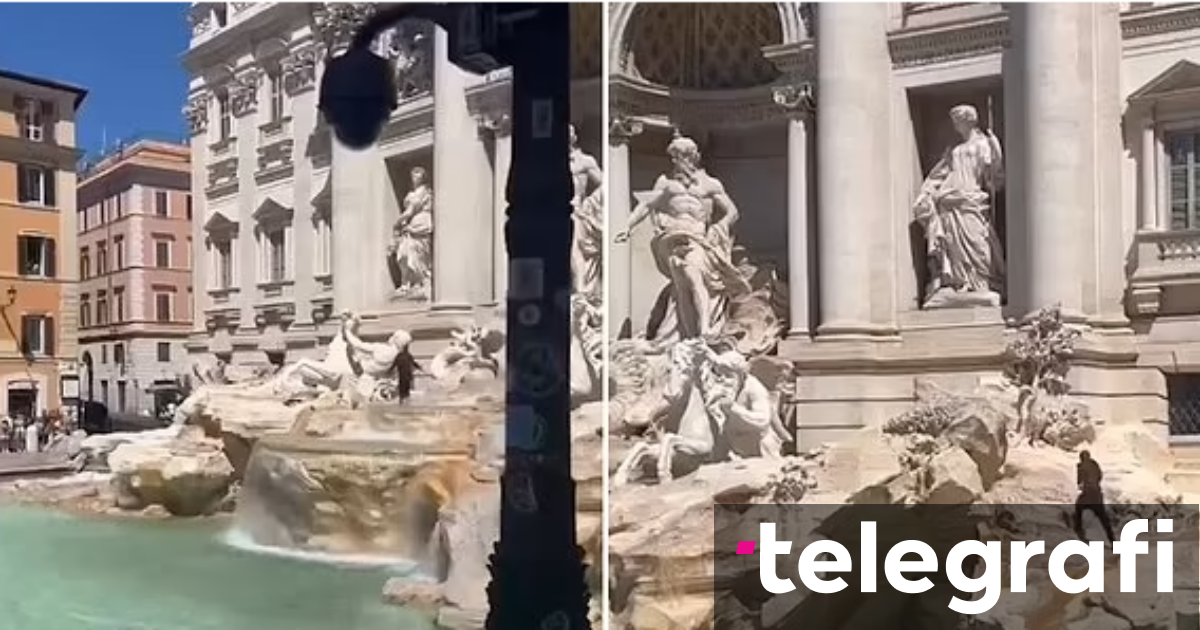 Së fundmi, një video që tregon një turist i cili përpiqet të ngjitet në kalin e shatërvanit historik Trevi të