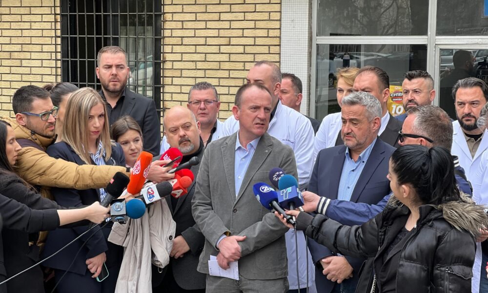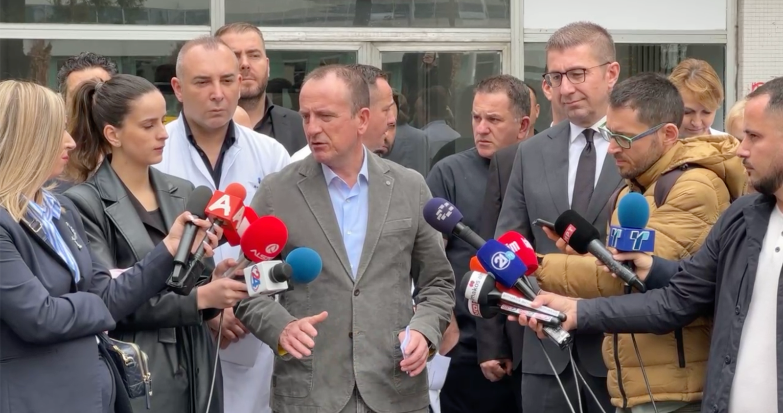 Ministri i Shëndetësisë, Dr. Arben Taravari, së bashku me kryeministrin Prof. Dr. Hristijan Mickoski dhe përfaqësues të shtabit të krizës,