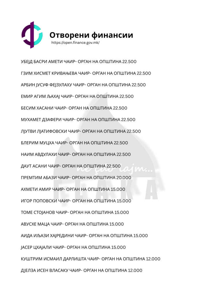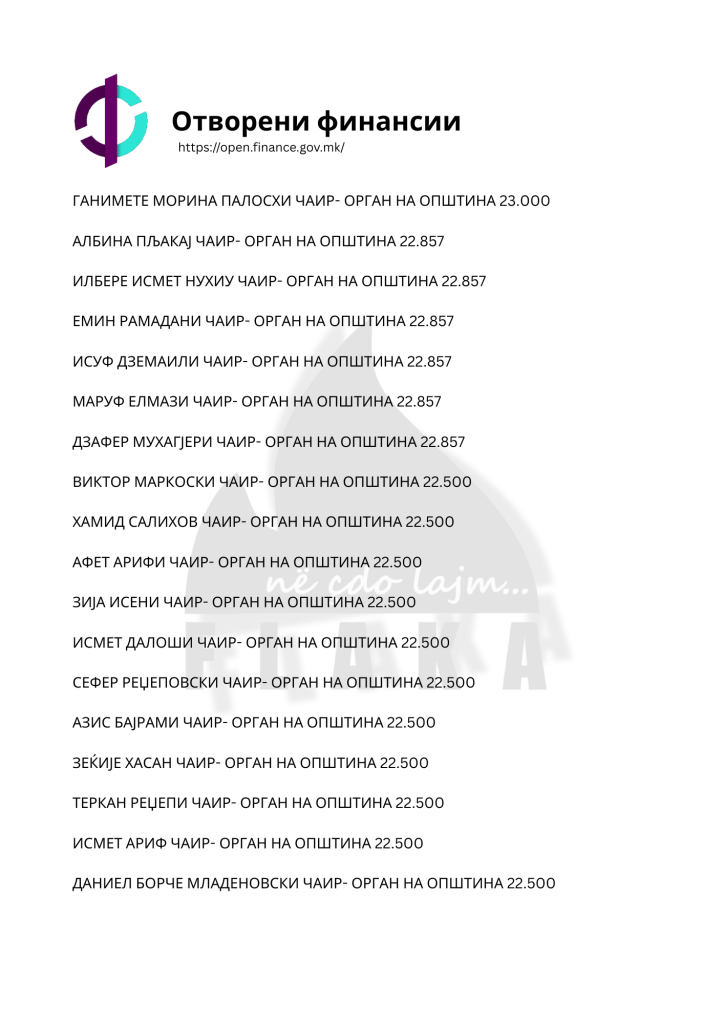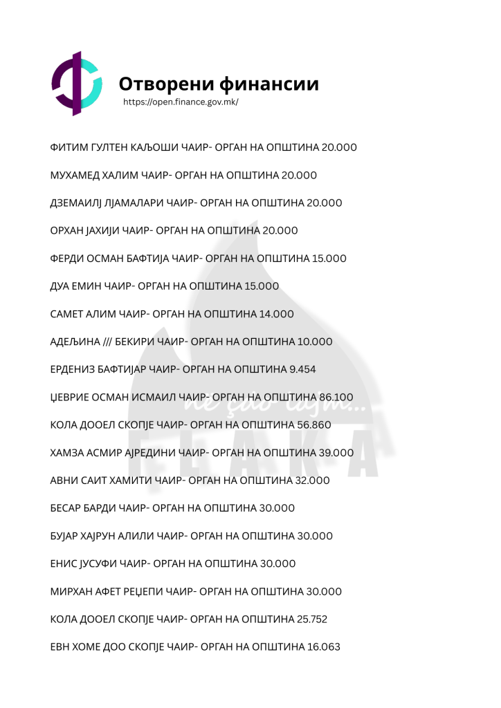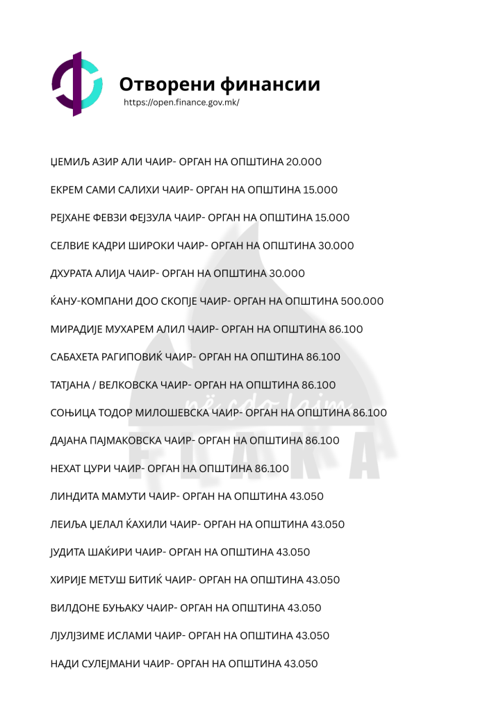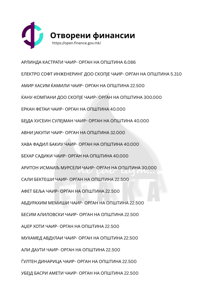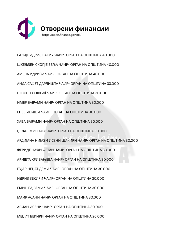 Daniel Mlladenovski, Goran Arsovski, Snezhanka Gusheva, Ana Oboçka, Tome Stojanov, Viktor Markovski dhe Igor Popovski, janë ndër emrat e shumtë që ndodhen në listën e kontratave të shpërndara nga komuna e Çairit, për të cilat opozita shqiptare pohon se janë lidhur për përfitime elektorale, shkruna Flaka.
