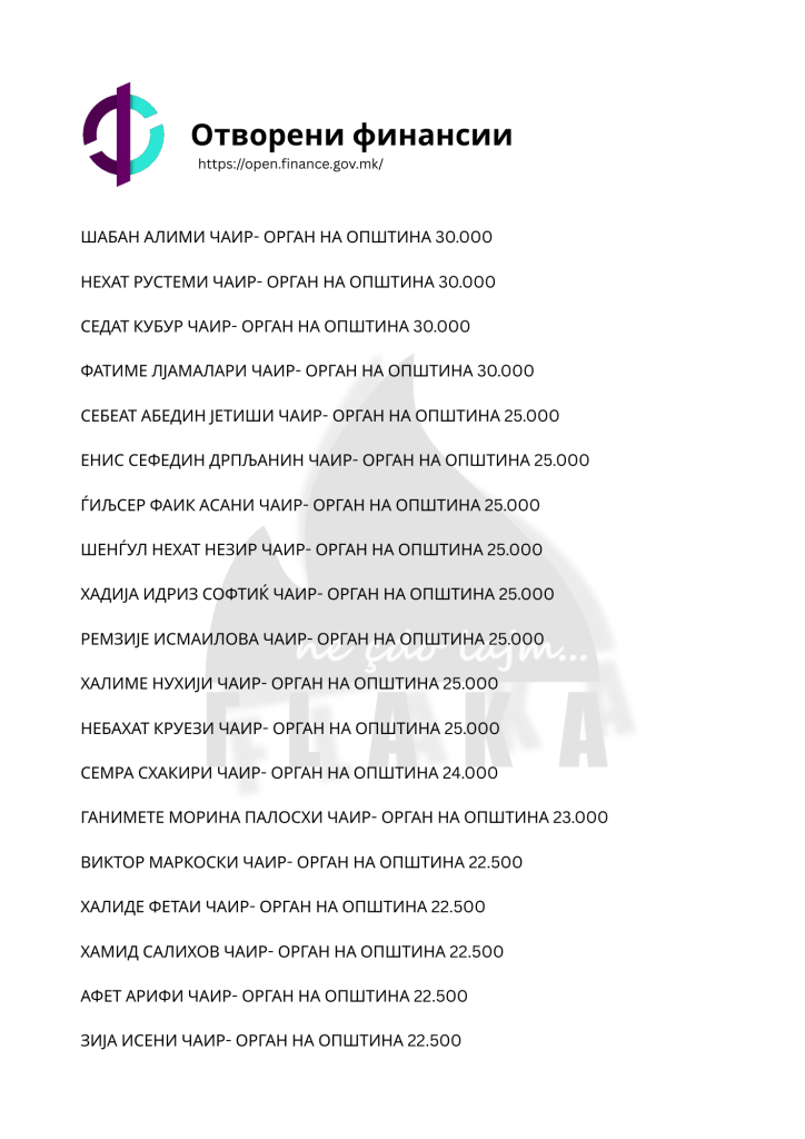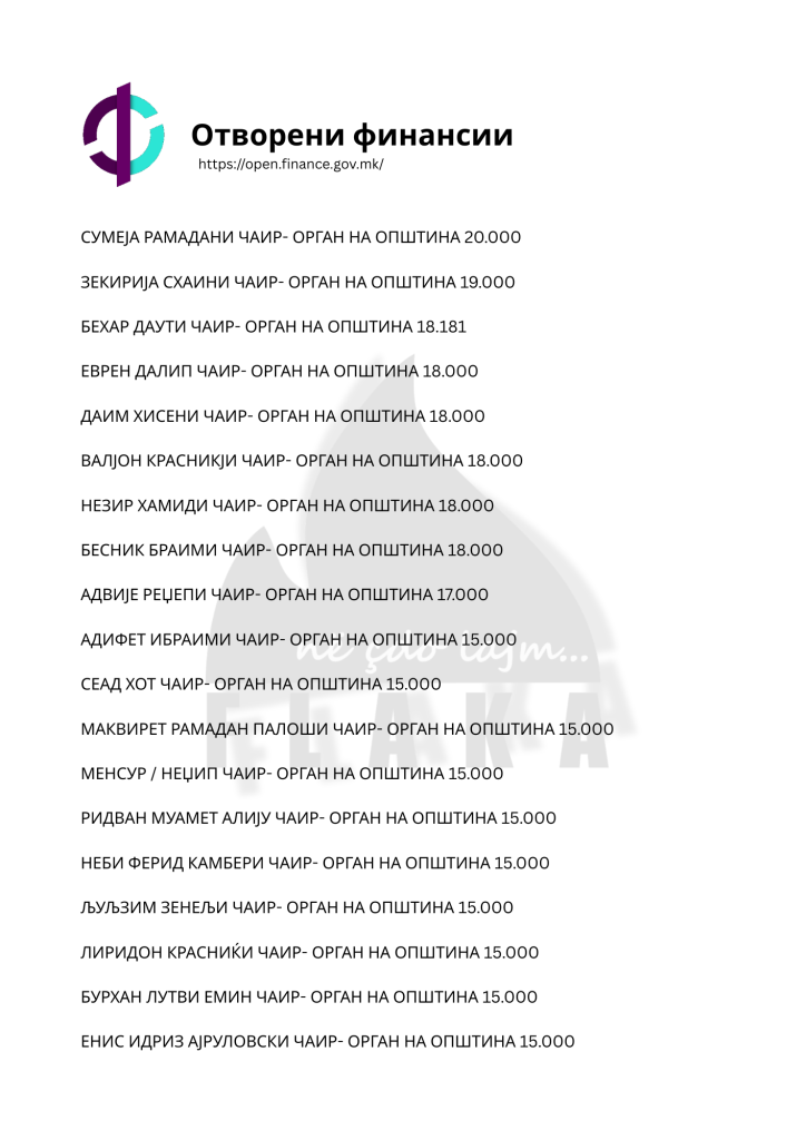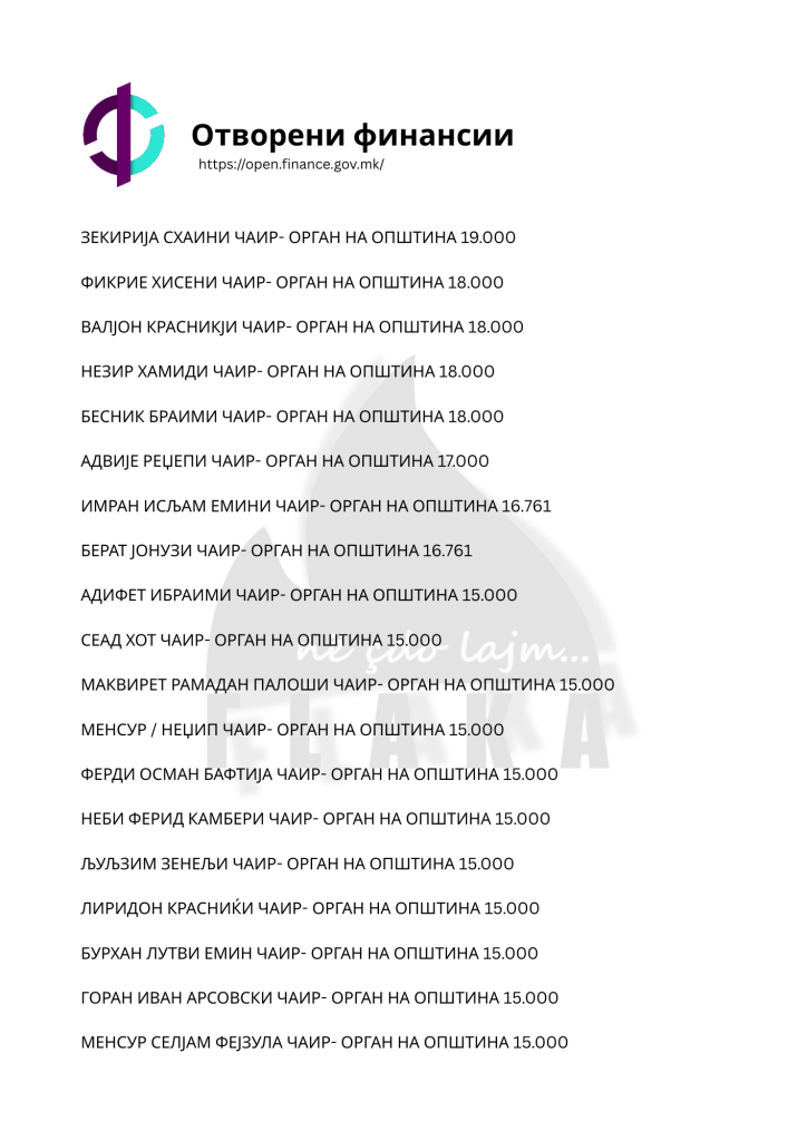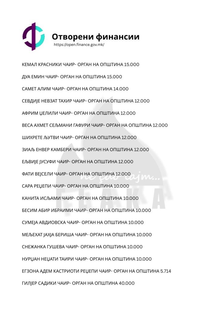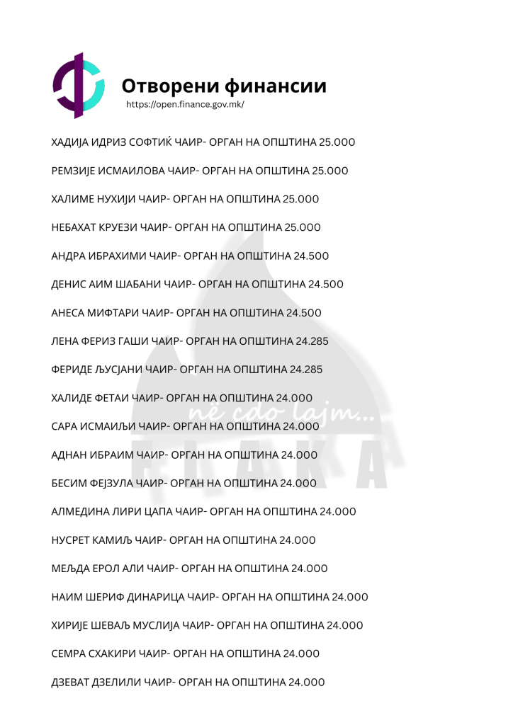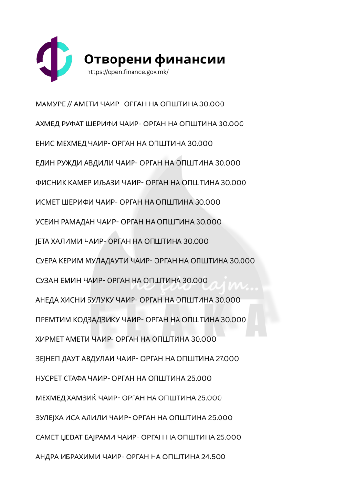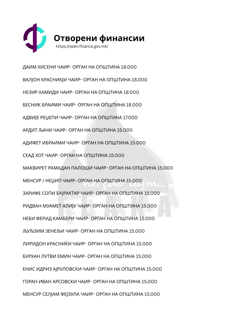 Daniel Mlladenovski, Goran Arsovski, Snezhanka Gusheva, Ana Oboçka, Tome Stojanov, Viktor Markovski dhe Igor Popovski, janë ndër emrat e shumtë që ndodhen në listën e kontratave të shpërndara nga komuna e Çairit, për të cilat opozita shqiptare pohon se janë lidhur për përfitime elektorale, shkruna Flaka.